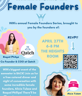Female Founders is one of WIN’s most anticipated events of the year, bringing together students, entrepreneurs, and professionals for an evening of conversation, inspiration, and community. The event features a keynote address from a leading female founder, followed by a moderated discussion and audience Q&A that offers attendees the opportunity to engage directly with the speaker and gain insight into her entrepreneurial journey.